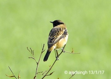 Saxicola maurus, गोजा, गप्पीदास। अलग अलग जोड़े खुले क्षेत्र में धान एवं गन्ने के खेतों में पौधों के ऊपर बैठकर कीटों को देखते रहते हैं। अङ्ग्रेजी नाम Stonechat का स्रोत नर की बोली से प्रतीत होता है जो दो पत्थर के टुकड़ों को लड़ाने से निकली ध्वनि के समान होती है।