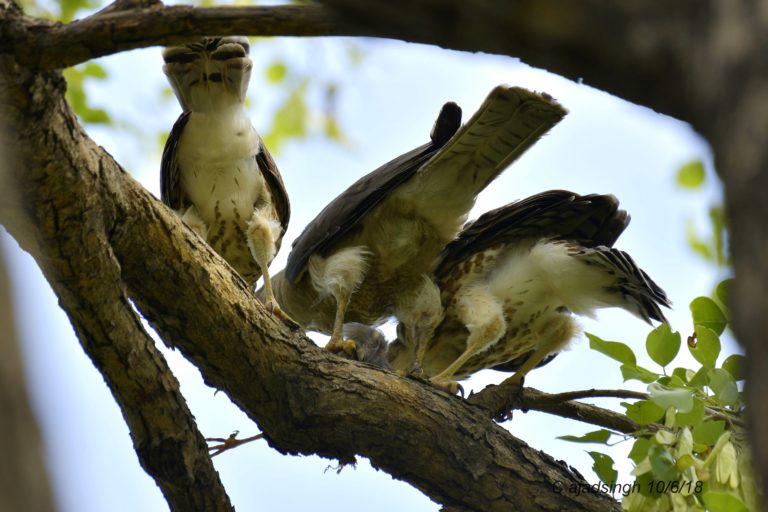 Accipter badius शिकरा : अपने से बड़े पक्षियों का भी आखेट करने में समर्थ होता है। आहार एवं वास के अनुसन्धान में अल्प दूरी तक स्थानीय प्रवास भी करता है।
